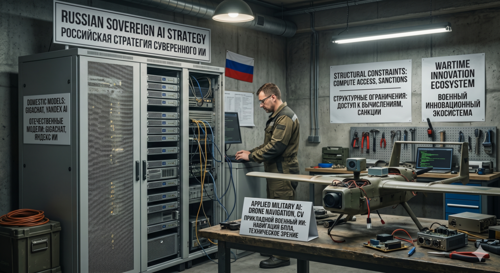 The core pattern is strategic adaptation rather than frontier leadership. Russian institutions are trying to build sovereign AI stacks, domestic large language models, and a wartime innovation ecosystem, but they remain constrained by limited high-end compute, sanctions pressure, restricted scientific integration, and heavy reliance on adapting open-weight foreign models for local deployment.