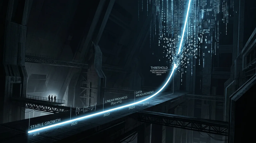 We still tend to talk about AI progress as though it unfolds on a curve we can roughly track. Models improve. Benchmarks rise. Products get better. The line moves upward. Even when the pace feels startling, the underlying assumption remains the same: progress may be fast, but it is still legible. We can watch it happen, measure it, and form at least a rough estimate of where it is headed.